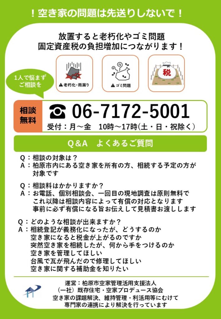 当事業は柏原市の空き家管理活用支援法人の指定を受けた一般社団法人既存住宅・空家プロデュース協会が運営しています。